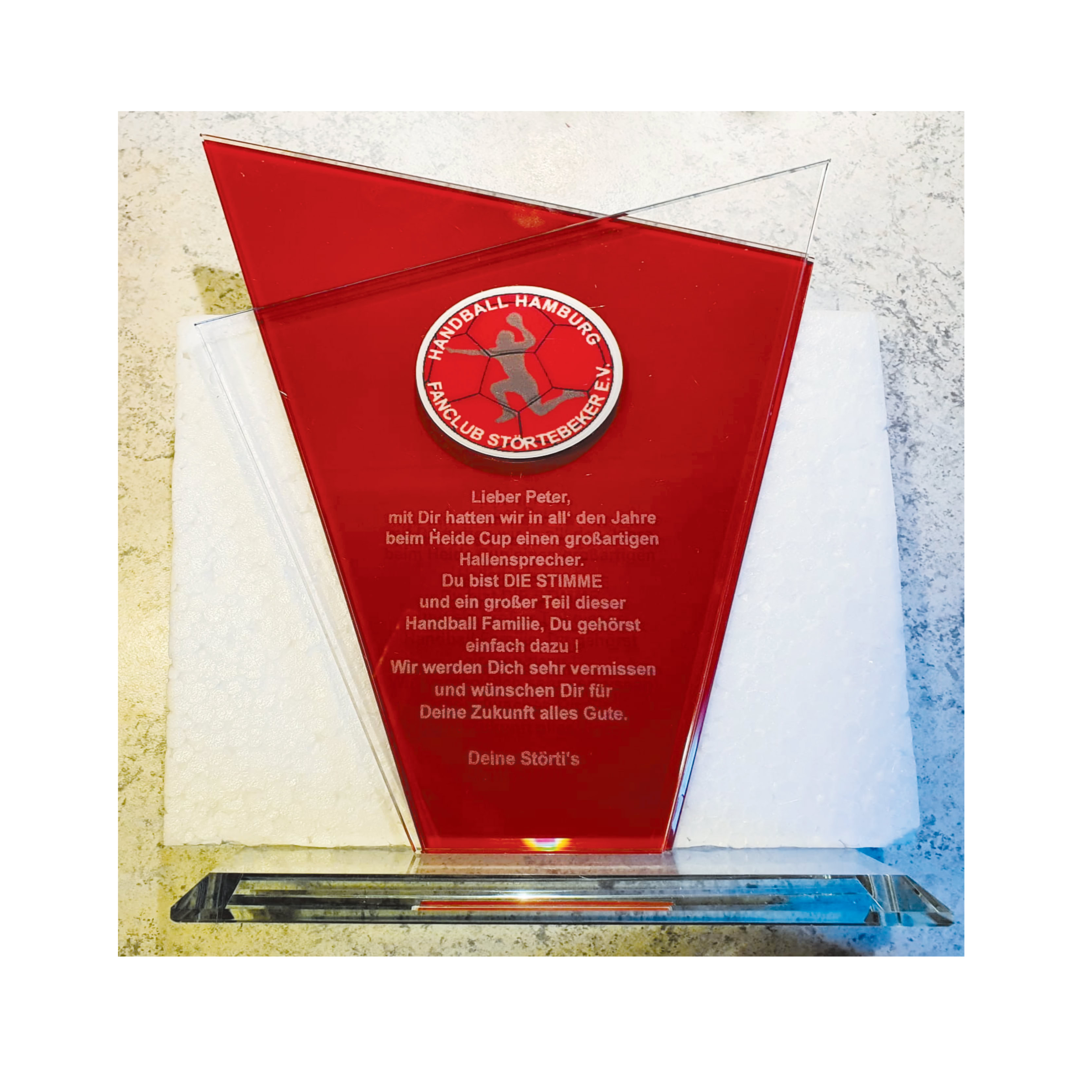 „Peter war die Stimme des IHC. Wir werden ihn vermissen“, sagte Bianca Burwieck, Vorsitzende des Fanclub Störtebeker e.V, am Rande des Turniers. Die Störtis, die mit Peter eine lange Freundschaft und die Leidenschaft zum Handball Sport Verein Hamburg verbindet, verabschiedeten den 78-Jährigen mit einem eigens für ihn angefertigten Pokal.